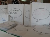 Anyone who wants a "Spruchbeutel" leaves a saying on a paper bag - for others to take.