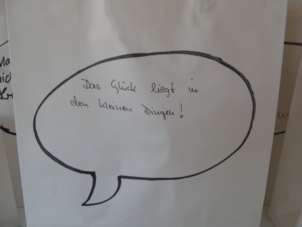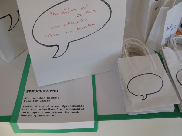 Anyone who wants a "Spruchbeutel" leaves a saying on a paper bag - for others to take.