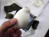 After a series of workshops during summer 2012 the decision was to use hop fibres to press and enclosed object to hold a secret. During an outdoor bonfire 132 small secrets made by staff from the Kartause were fired, and will later be encapsulated. The hop fire shapes are going into production in early 2013 and the new product will enter the International Village Shop in April 2013.