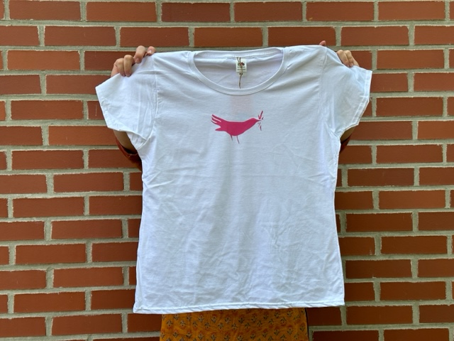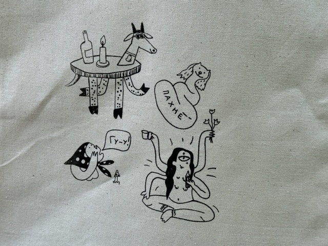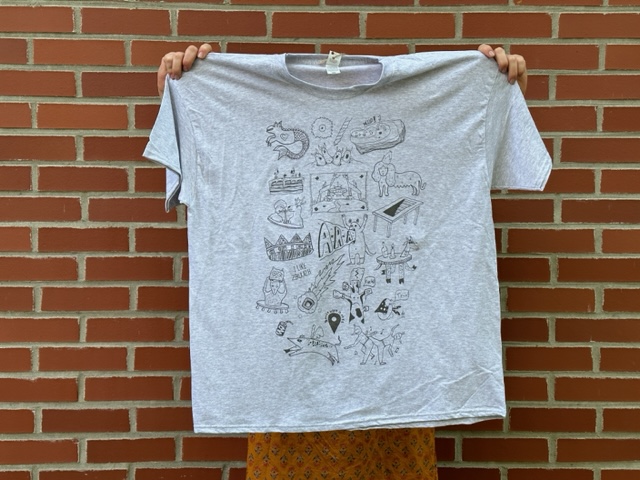 Alina Dzeravianka and Sviatlana Husakova developed a series of T-Shirt designs during a residency in Neuenkirchen in late spring 2023, and screen printed them on site.