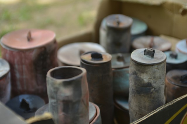 The ceramics were made by the villagers of Zvizzhi (Sergei Serov, Natalia Serova, Nikita Grigoriev, Natalia Bukovskaya, Arina Bukovskaya, Yulia Karikh, Vadim Jakushin among others), Chajim Harald Grosser and Alexandra Bikmatova with the collaboration of Myvillages.